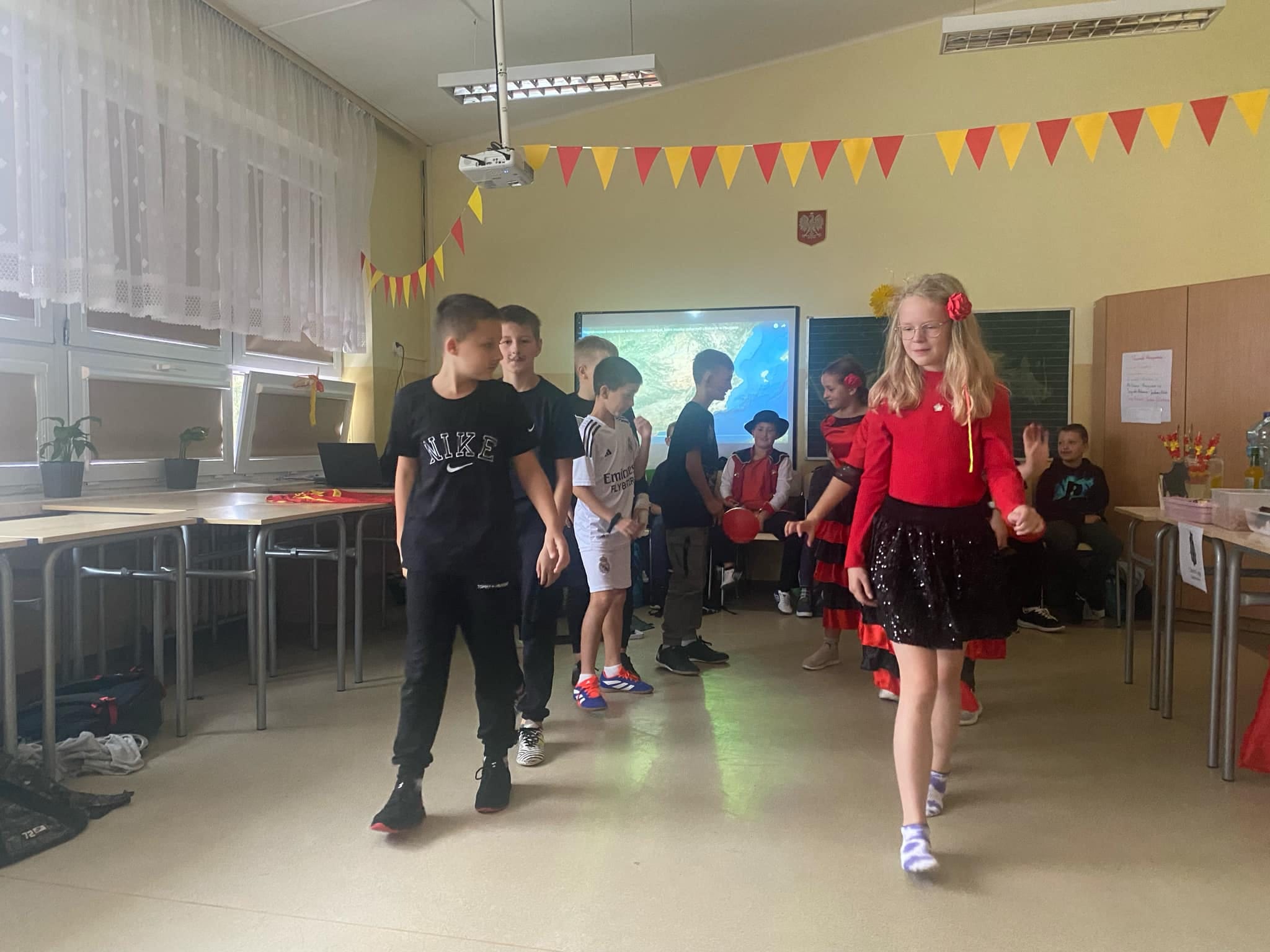 Każda klasa reprezentowała inny kraj – były tańce, piosenki, scenki, quizy językowe, a nawet prezentacje kulinarne. Na stołach królowały przysmaki z różnych zakątków świata: tortille, sushi, ciasta, sałatki i inne przysmaki i napoje.