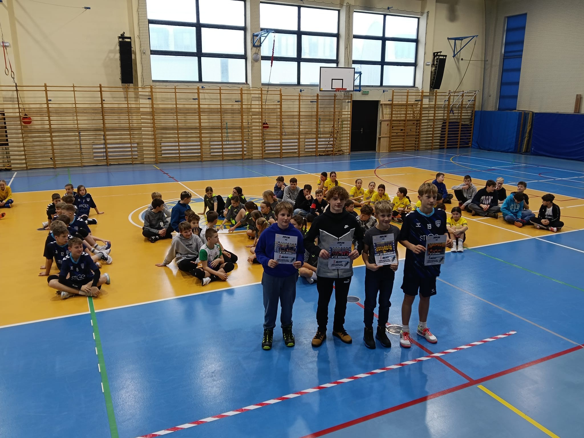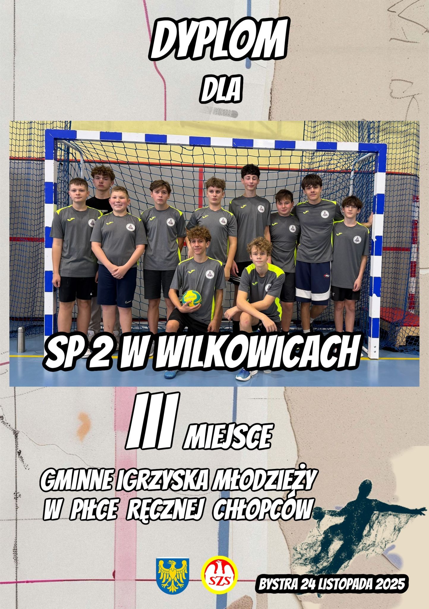 26 listopada środę w Bystrej odbyły się zawody w mini piłce ręcznej 4 - 6. Nasze dziewczęta zagrały fantastyczny turniej i zakończyły zawody na drugim miejscu ulegając jedynie utytułowanym gospodyniom. Drużyna chłopców po bardzo zaciętych spotkaniach pokonała swoich rówieśników z pozostałych szkół, ulegając jedynie gospodarzom z SP2 w Bystrej. Nauczyciele i trenerzy piłki ręcznej obecni na zawodach bardzo chwalili grę naszych zespołów. Ponieważ to nie koniec rozgrywek w piłce ręcznej i czeka nas jeszcze turniej powiatowy mamy nadzieję na dalsze sukcesy!